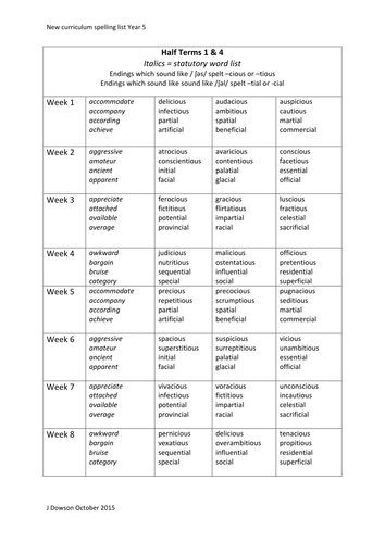 Year 5 spelling lists by MrDowson - Teaching Resources - TES