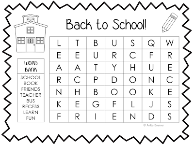 Mrs. Bremer's Class: Back To School Word Search FREEBIE