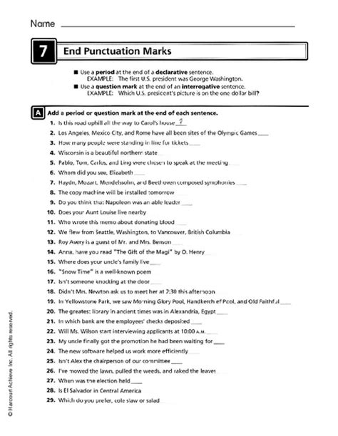 End Punctuation Marks Worksheet for 3rd - 5th Grade ...