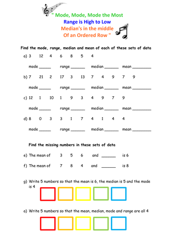 Mean Median Mode Range Worksheets