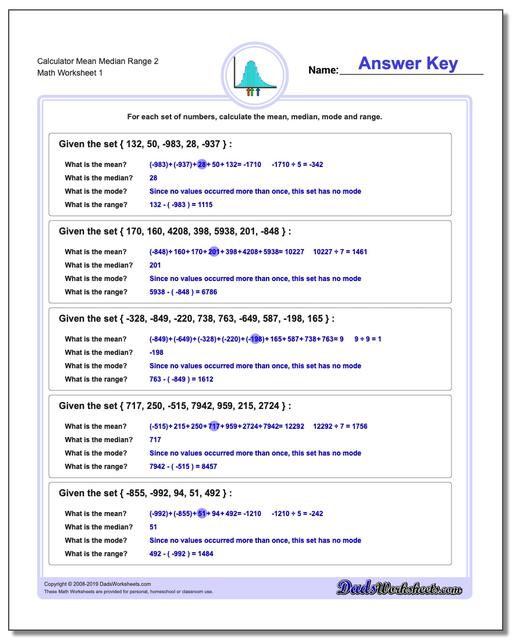 Mean Median Mode & Range Worksheets | Free - CommonCoreSheets