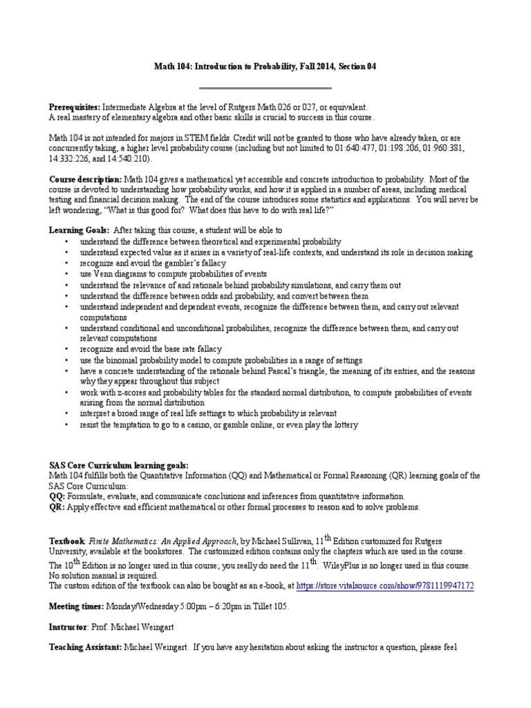 104f14Section04Syllabus | Probability | Homework