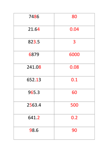 place value match cards - what is the value of the digit ...
