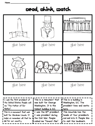 Math, language arts and other activities, including letters and the alphabet, handwriting, numbers, counting Use these free worksheets to learn letters, sounds, words, reading, writing, numbers, colors, shapes and other preschool and kindergarten skills. Make wonderful, simple crafts with things found around the house. The day is meant to celebrate George Washington and all the presidents of the U.