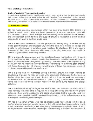Report Card Comments Math 3rd Grade/Year 4 by Hayley | TpT
