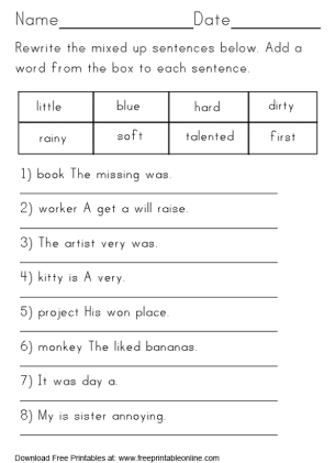 Sentence Structure Worksheets Sentence Building Worksheets ...
