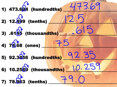 We use the symbol ≈ when rounding. Rounding gives the closest number to the original whose last non-zero Rounding decimals is just like rounding whole numbers, with one key difference: when rounding to a place to the left of the decimal point, change. Round numbers to thousands, hundreds, tens, ones, tenths, hundredths and thousandths.